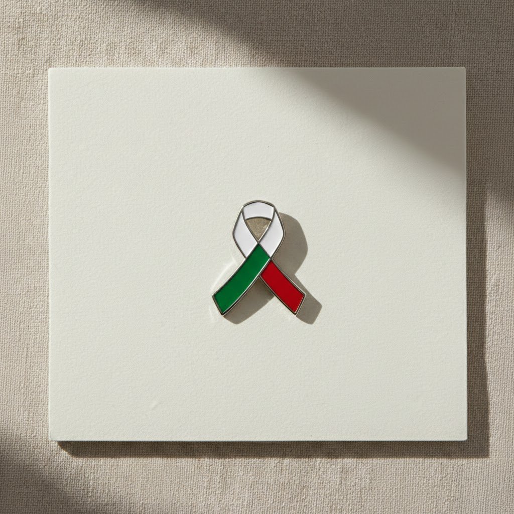 Designed as a simple remembrance ribbon with the colors of Iran woven through it, this piece is at once a memorial and a statement. It honors those who stood for freedom and reminds the world that solidarity does not end when headlines fade.